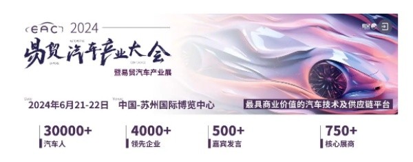 EAC2024易贸汽车产业大会暨易贸汽车产业展将于2024年6月21-22日在苏州国际博览中心举办,面积40000平方米。