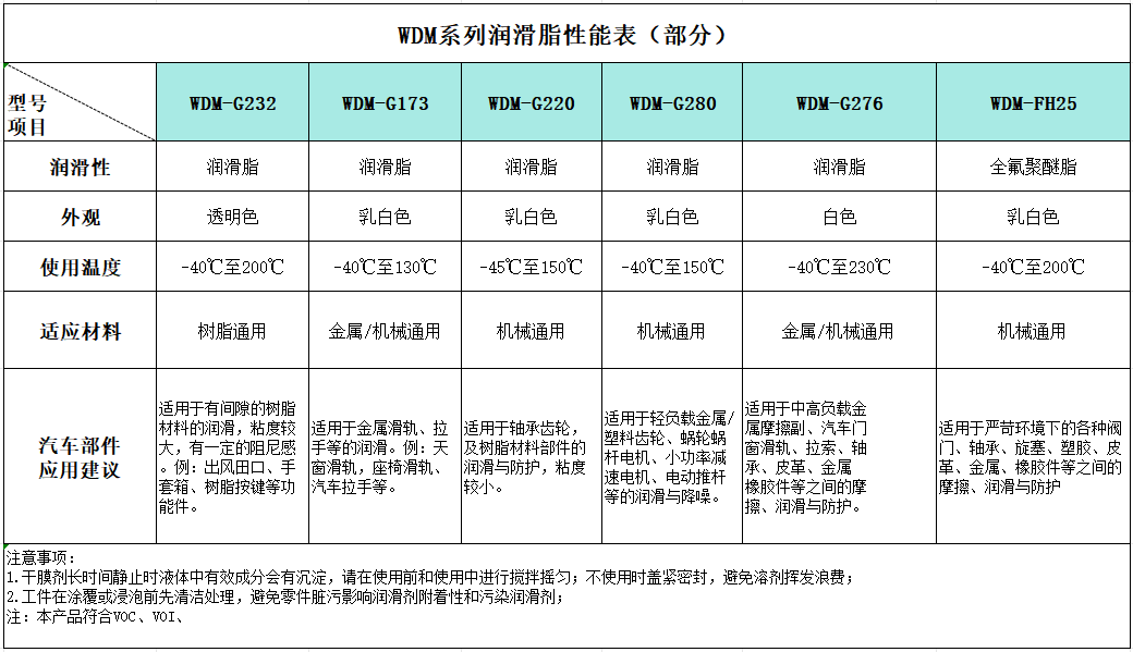特种润滑脂型号:WDM-G232特种润滑脂、WDM-G173特种润滑脂、WDM-G220特种润滑脂、WDM-G280特种润滑脂、WDM-G276特种润滑脂、WDM-FH25特种润滑脂